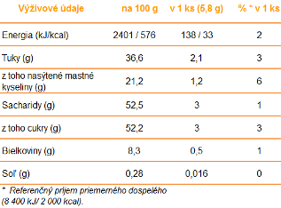 Obsah mliečnej sušiny: najmenej 28 % z celkovej hmotnosti; obsah kakaových zložiek: najmenej 16 % z celkovej hmotnosti